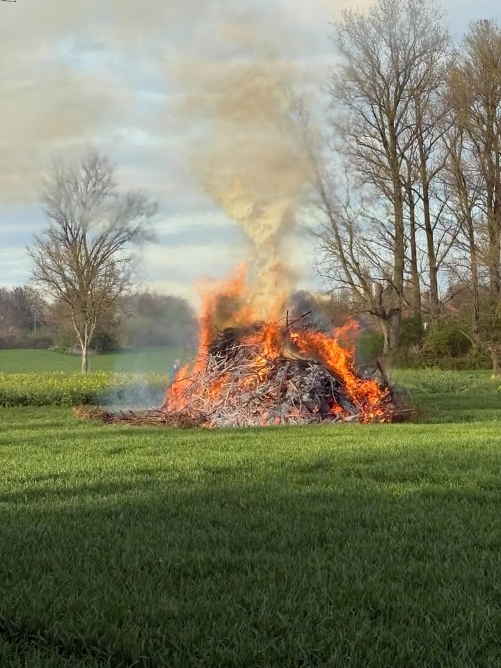 Osterfeuer 🐰 🔥 mit der mobilen Kirche ⛪️ und dem Angrillen 🌭 der Jungschützen auf dem Hof der Familie Hilgers in Eschweiler zu Gunsten der Kita Pusteblume